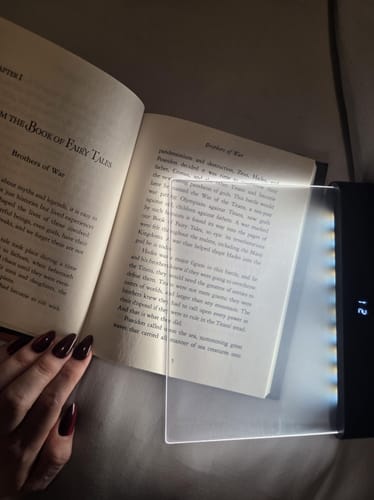 Ξέχνα τους άβολους φακούς και τα φωτιστικά: το φωτιστικό ανάγνωσής μας φωτίζει ομοιόμορφα ολόκληρη τη σελίδα, χωρίς να δημιουργεί θάμβωση ή σκιές. Μπορεί να ρυθμιστεί και να προσαρμοστεί σε οποιαδήποτε θέση, εξασφαλίζοντας πάντα τον ιδανικό φωτισμό για άνετη ανάγνωση, οπουδήποτε και οποτεδήποτε.